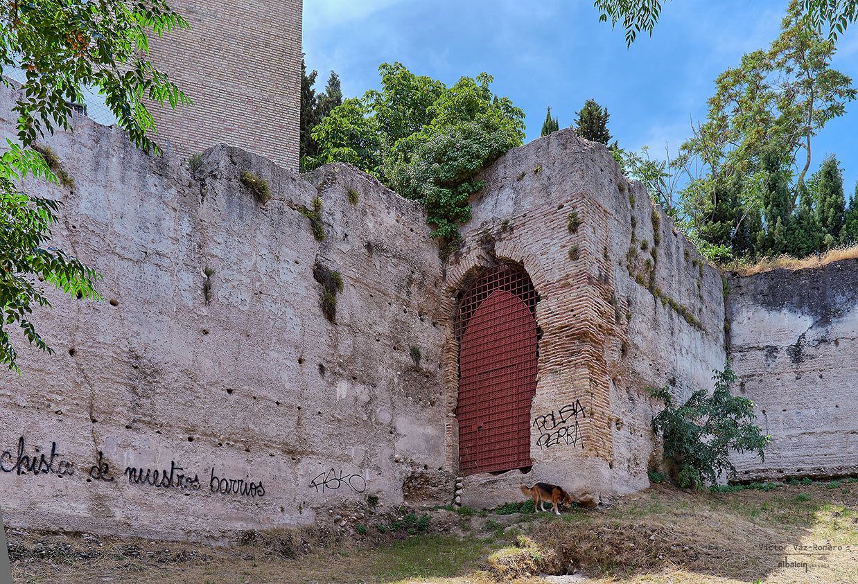 La cerca fue mandada construir durante el segundo tercio del siglo XIV por el hayib Ridwan, ministro de Yusuf I para contener el crecimiento del arrabal conforme a los avances de la conquista cristiana. Sin embargo, dada la anómala forma de unión de este acceso con los muros, cabe pensar que se hiciera en época posterior, quizás a finales del siglo XIV o los inicios del siglo XV, para corregir un fallo en la trama defensiva. Esto se explicaría por la ausencia de un paso en la muralla entre la puerta de Fajalauza y la de Elvira, aún cuando existió hasta 1978 un portillo intermedio en la Acera de San Ildefonso, conocido como puerta del Barrio de la Calzada (Bab Rabad al-Rasif).